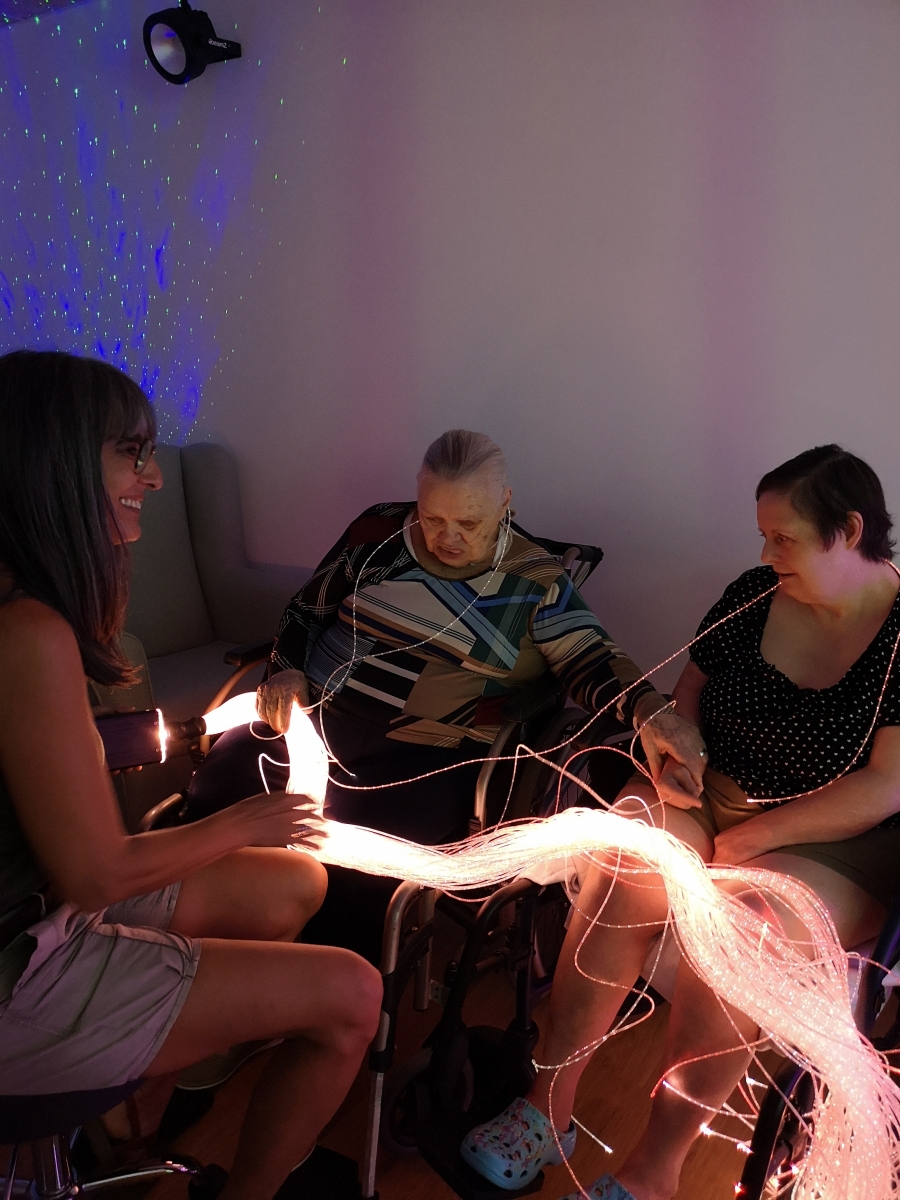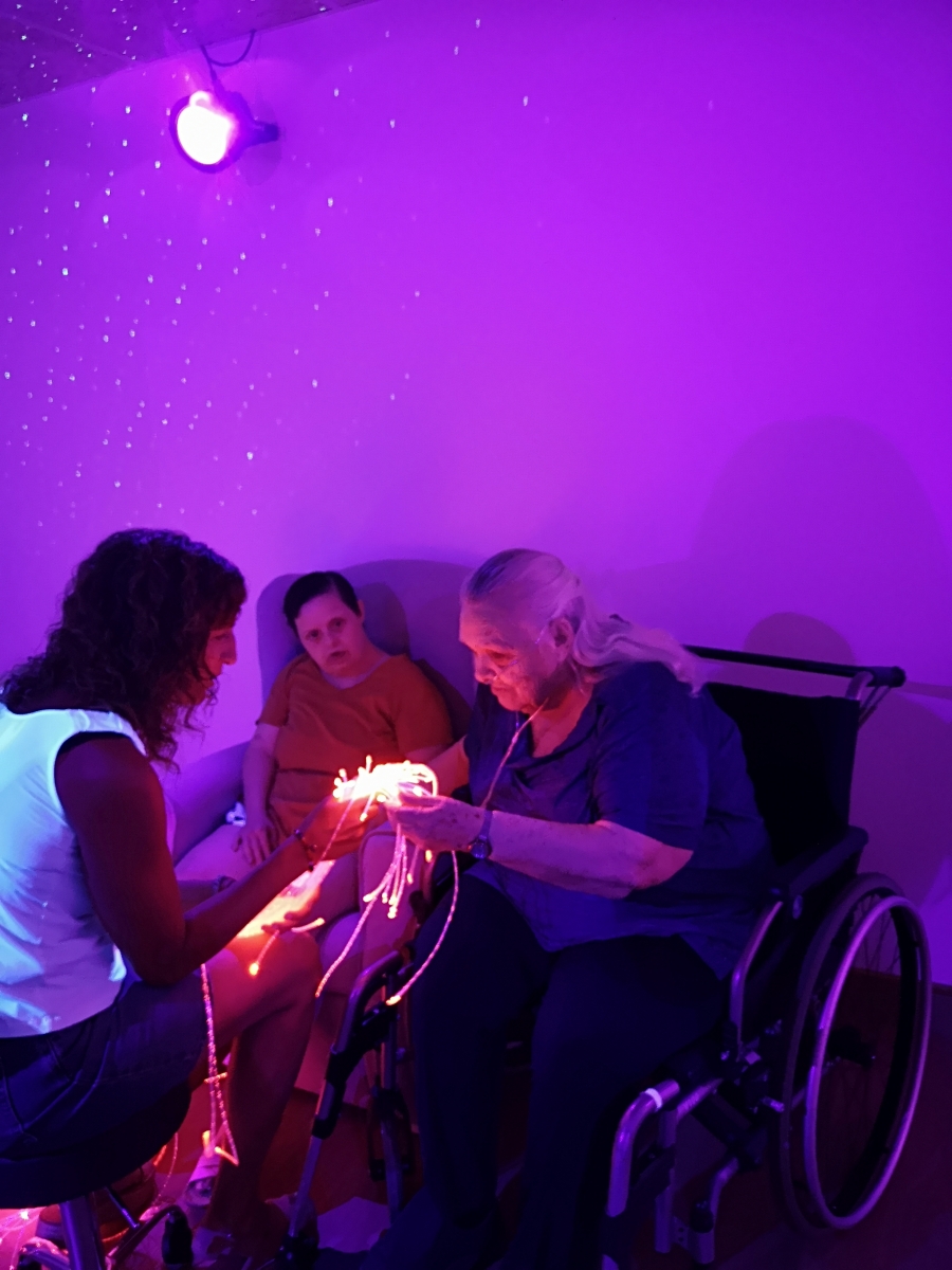 Des de fa uns mesos hem començat a fer les visites de la Júlia i l'Elvira a una de les sales snoezelen d'APASA. Un espai que ajuda a fer que mare i filla es reconnectin i puguin passar una estona relaxades i juntes. Aquí dins, el temps no passa i els records brollen.